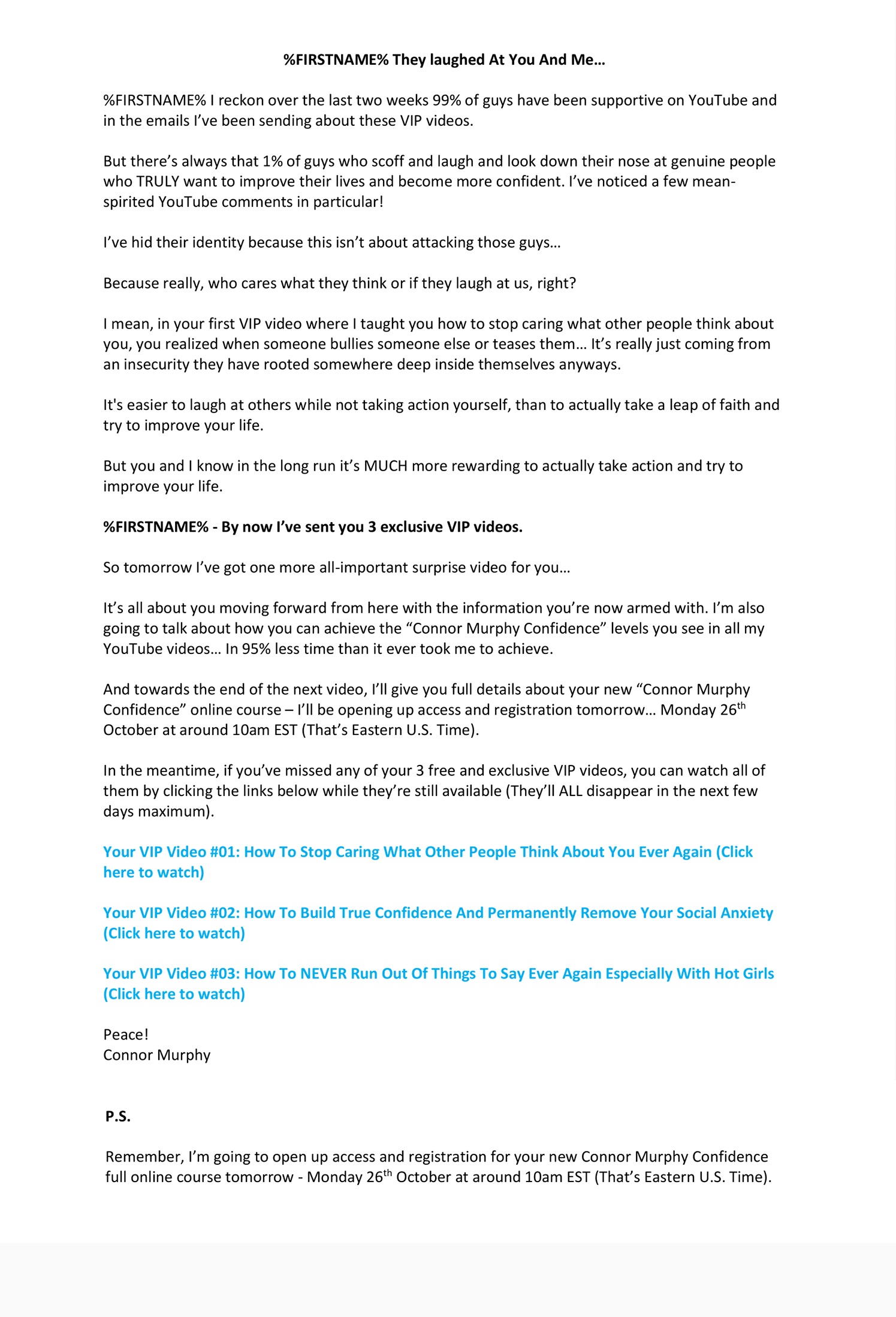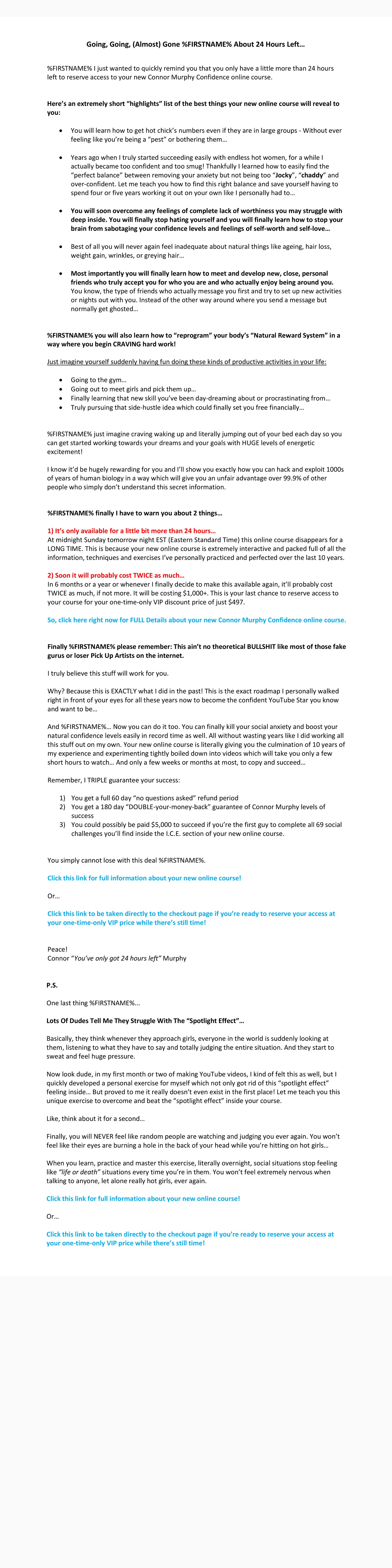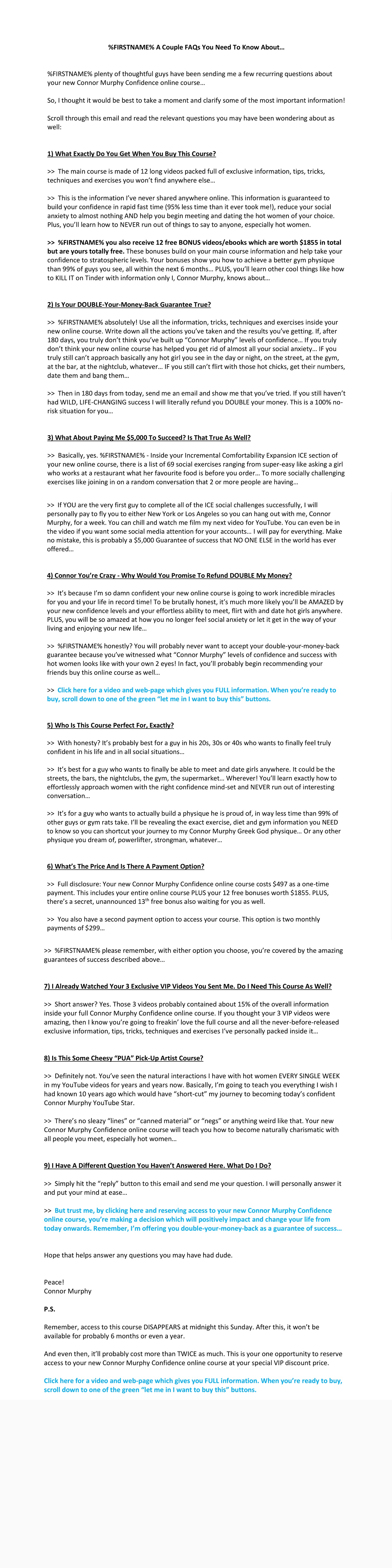 Now We’re Going To Take A Look At A Number Emails Helping Sell Famous YouTuber Connor Murphy’s (5+ Million Subscribers) Very First Online Course. It Was A Jeff Walker PLF Launch And There Was Over 35 Emails Written During This Launch Month…